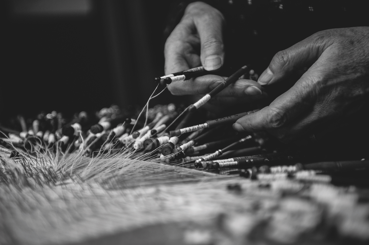 Back to winding new bobbins. I handle them with extreme care, using a delicate touch responsive to each thread in turn, some as fine as hair. The pencil-slim bobbins I use are made of bone and wood, sometimes inscribed as love tokens (‘Dear Hannah’), as tombstones (‘Ann Brum, Radstone, 1840’), for the birth of a baby or even to commemorate a public hanging. It was by chance that I came across ‘Joseph Castle, hung 1860’. Joseph, who murdered his wife Jane, was hanged in Luton and his in-laws held a memorial event at which participants were given commemorative bobbins. I have not used this one for decades but I hang it on my pillow with huge satisfaction, coming back to my roots in traditional lacemaking after long abandoning the fine traditional Bucks point and Bedfordshire laces for which the bobbin was made.